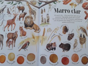 El llibre està estructurat partint dels colors. Cada doble pàgina està dedicada a un color concret i tot allò de la natura que té aquesta tonalitat. És bonic de veres.