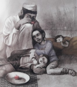 Els fulls setinats emfasitzen el fons d’un color negre dramàtic per on transcorre l’aventura. Les il·lustracions d’Issa Watanabe són commovedores i expliquen les escenes que anem veient sovint als diaris o a la televisió.