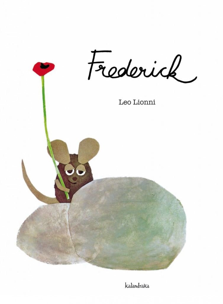 FrederickMitjançant la simplicitat gràfica de les seves imatges, l’ús de tècniques familiars i conegudes pels nens com el collage, les aquarel·les, els llapis de colors, cartolines…, Lionni construeix històries senzilles que sovint prenen forma de faula. És el cas de Frederick un dels seus llibres més famosos i premiats, on la tradicional faula d’Isop, “La cigala i la formiga”, es veu invertida de manera que resulta una altra de molt diferent, oposada, on es valora l’art i del seu lloc en la vida. El ratolí poeta, Frederick, és acceptat pels companys de cau i es preparen a gaudir de la seva poesia durant els crus mesos de l’hivern.