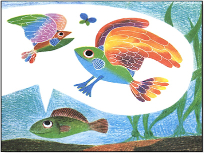 peixTreball dur. Leo Lionni apuntava que de tant en tant podem tenir moments d’inspiració en que l’imaginari ajudi a crear imatges o pensaments però ell entenia que la majoria dels llibres que feia provenien d’un procés complex en el qual la idea pren forma a poc a poc, per assaig i error, a través de camins secundaris que et condueixen a la solució final.