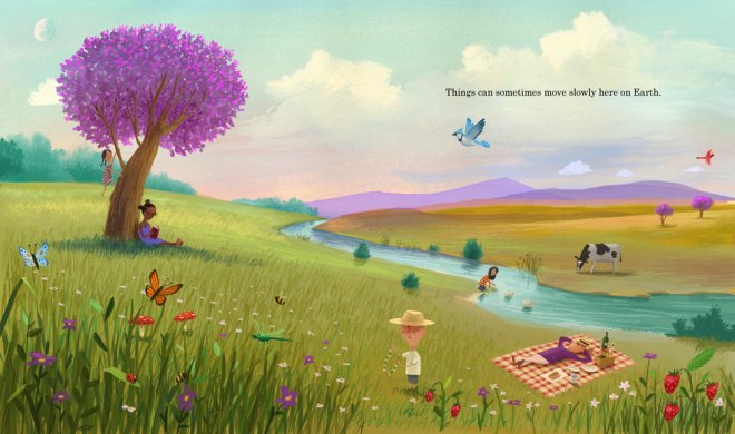 Ahir vam presentar aquest llibre de l’Oliver Jeffers, autor del qual ja n’hem parlat en aquest blog (per exemple a https://jaumecentelles.cat/2018/05/04/apunts-per-viure-al-planeta-terra-segons-jeffers/) i que en aquest cas porta com a subtítol “Trobant el nostre lloc en el temps i l’espai“. Està editat, com tots els seus llibres, per Andana.