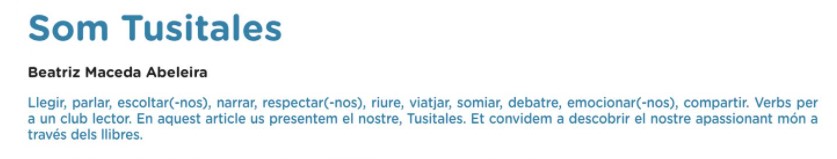 L’editorial va signada pel Raül Manzano que fa unes reflexions molt encertades i ens convida a endinsar-nos en les pàgines del monogràfic per donar resposta al gran repte que ens planteja la literacitat: quin lloc ocupen els textos, siguin del tipus que siguin, en les nostres vides?