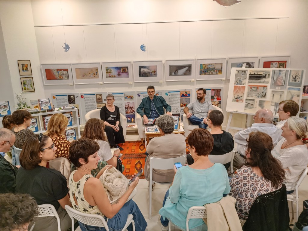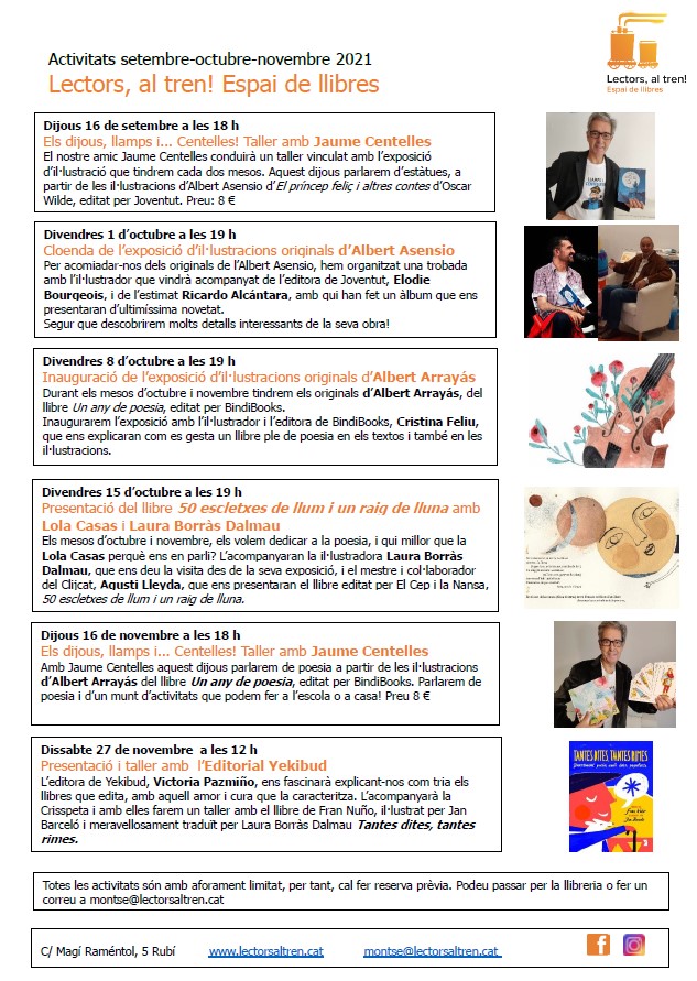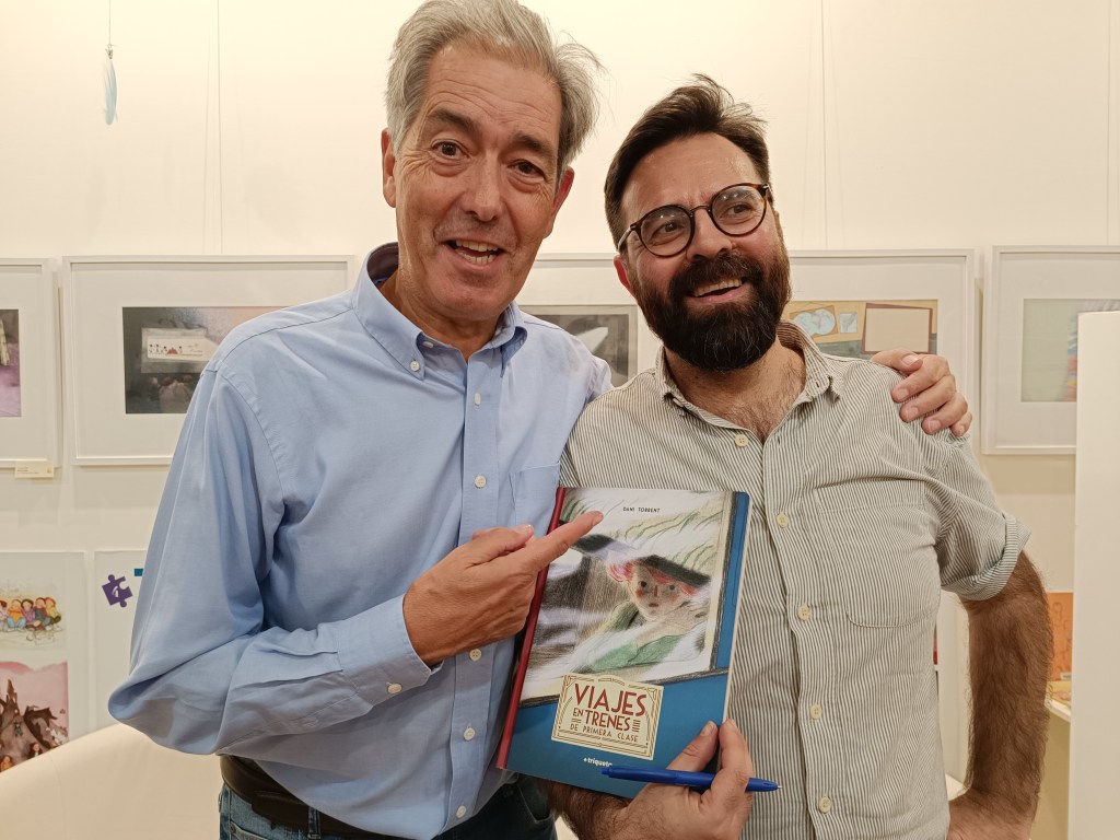 Un altre agraïment a la Montse i al Carles, llibreters de “Lectors, al tren!” una de les millors llibreries infantils que conec. Ens van fer el servei de venda de llibres de l’Ariol i del Gos Pudent.
